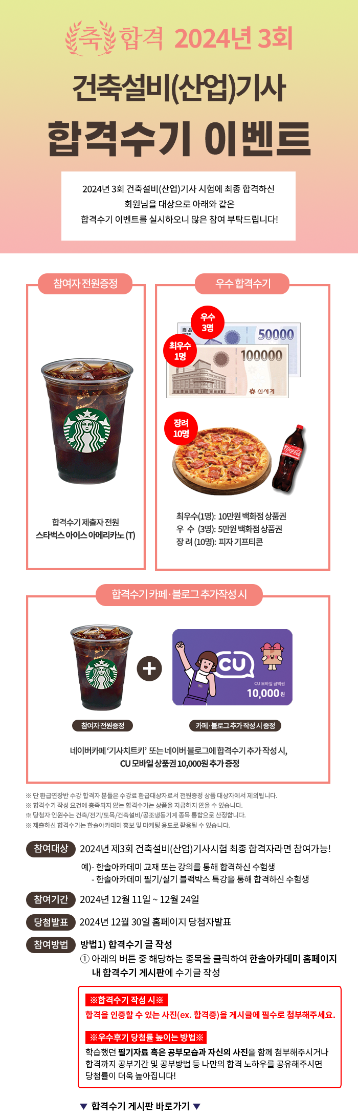 2024년 제3회 건축설비(산업)기사 합격수기 이벤트