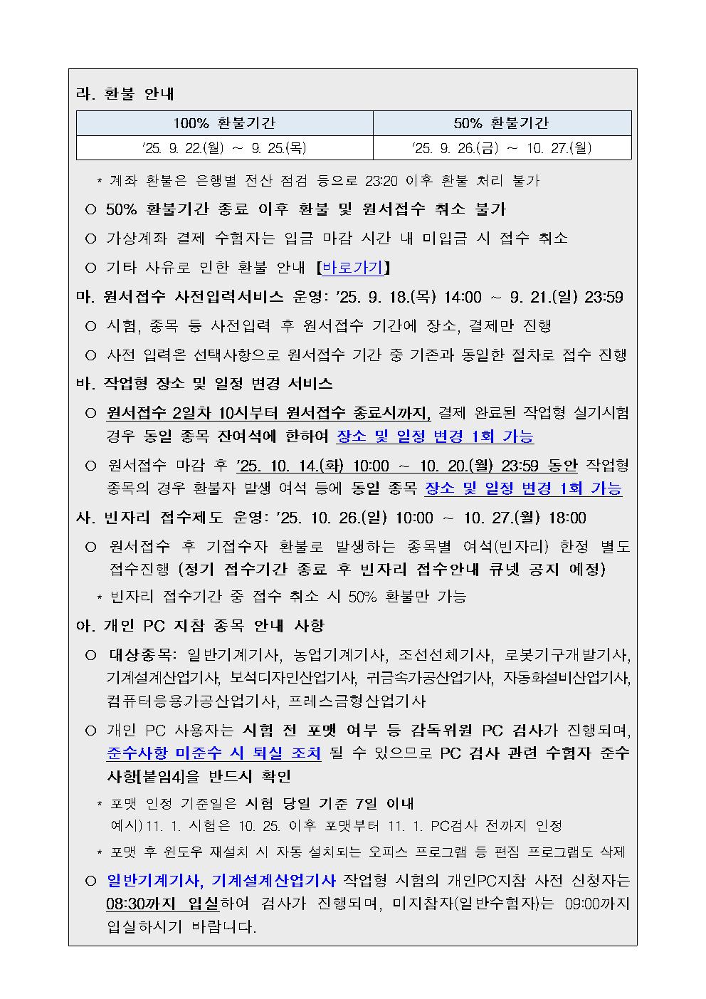 ★ 등급별 분산접수 알림 (산업기사, 서비스) 2025.09.22.(월) 10:00 ~ (기사) 2025.09.22.(월) 14:00 ~