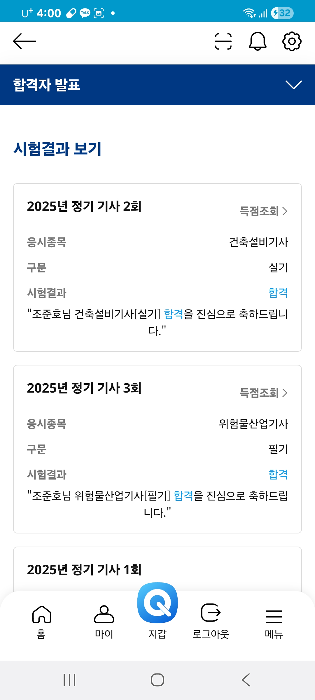 이번엔 좀더 다잡아 공부 했더니 합격했네요~~ 83점으로 합격했습니다.