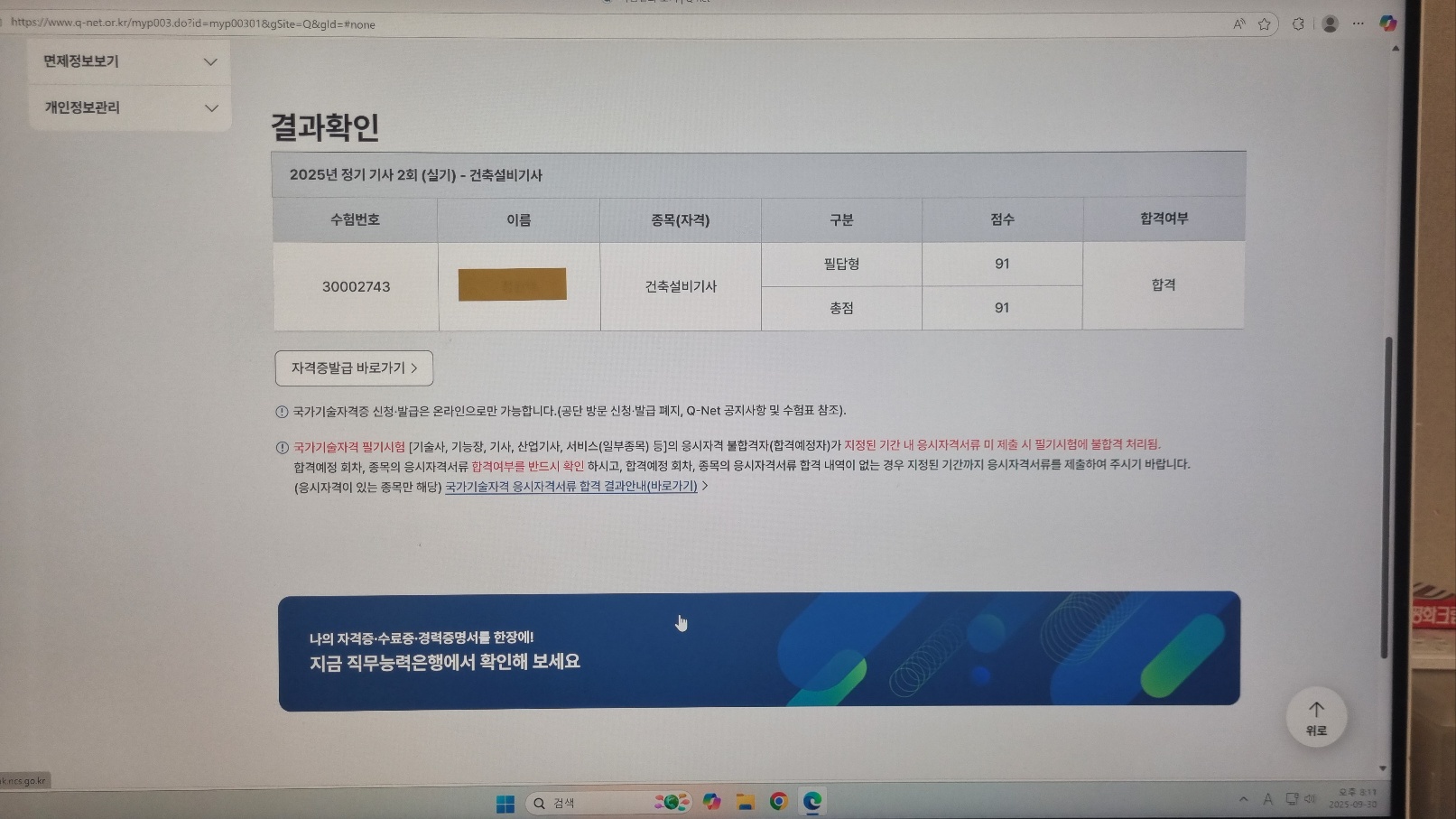 실기는 조성한 선생님의 인강으로 2개월 정도 도서관 다니면서 공부하고 시험을 봤는데 91점을 받아 합격했습니다.