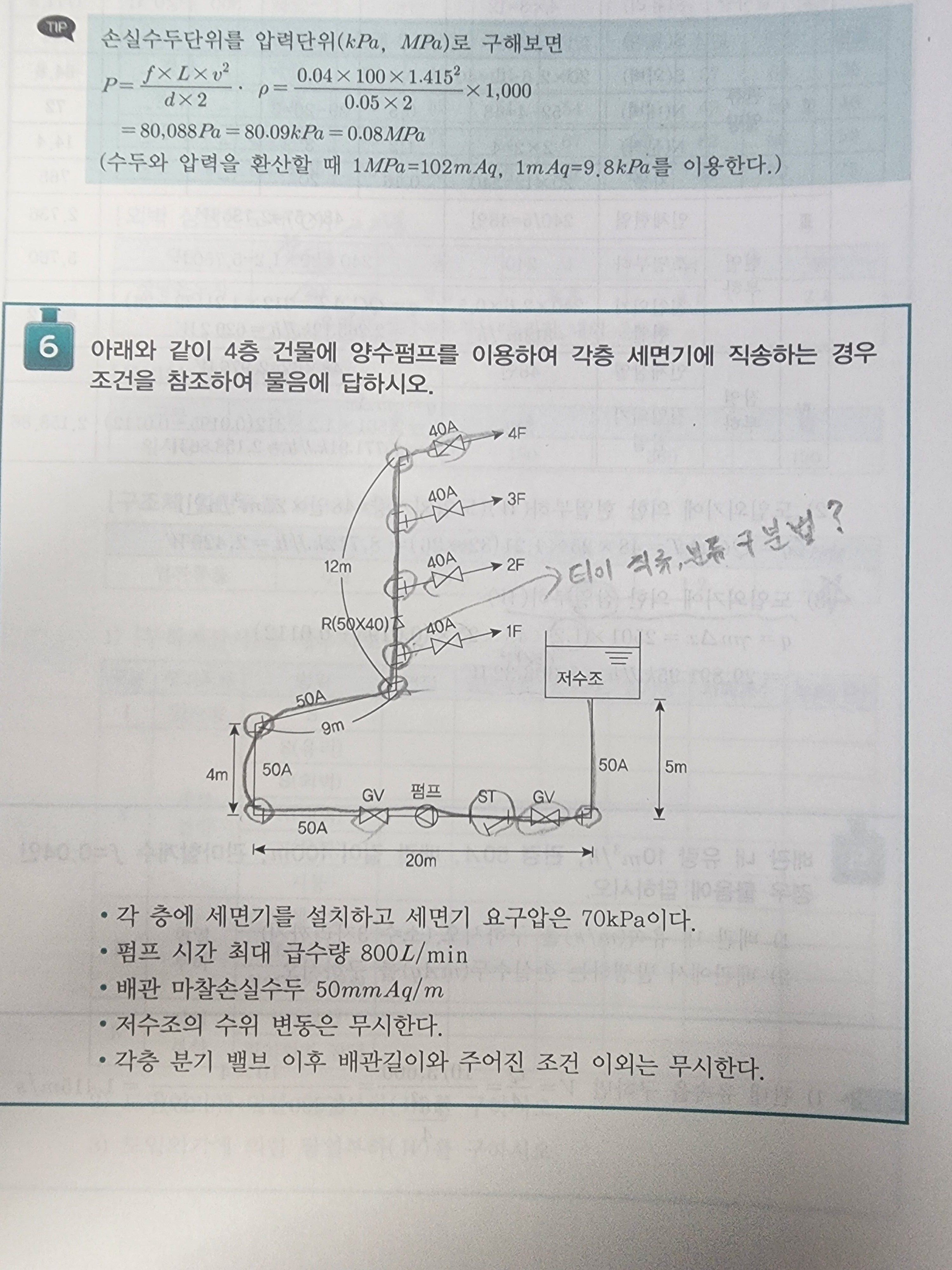 안녕하세요 교수님. 위 문제에서 배관 부속 국부저항 구할때 티이의 경우 제가 도면상