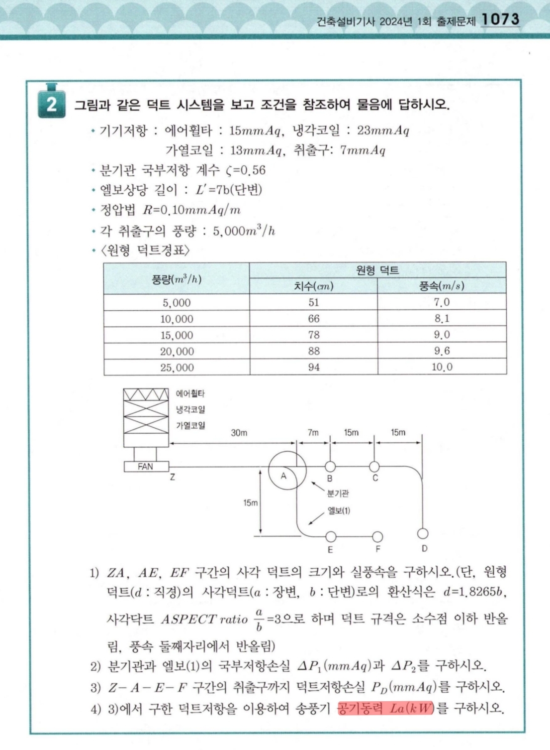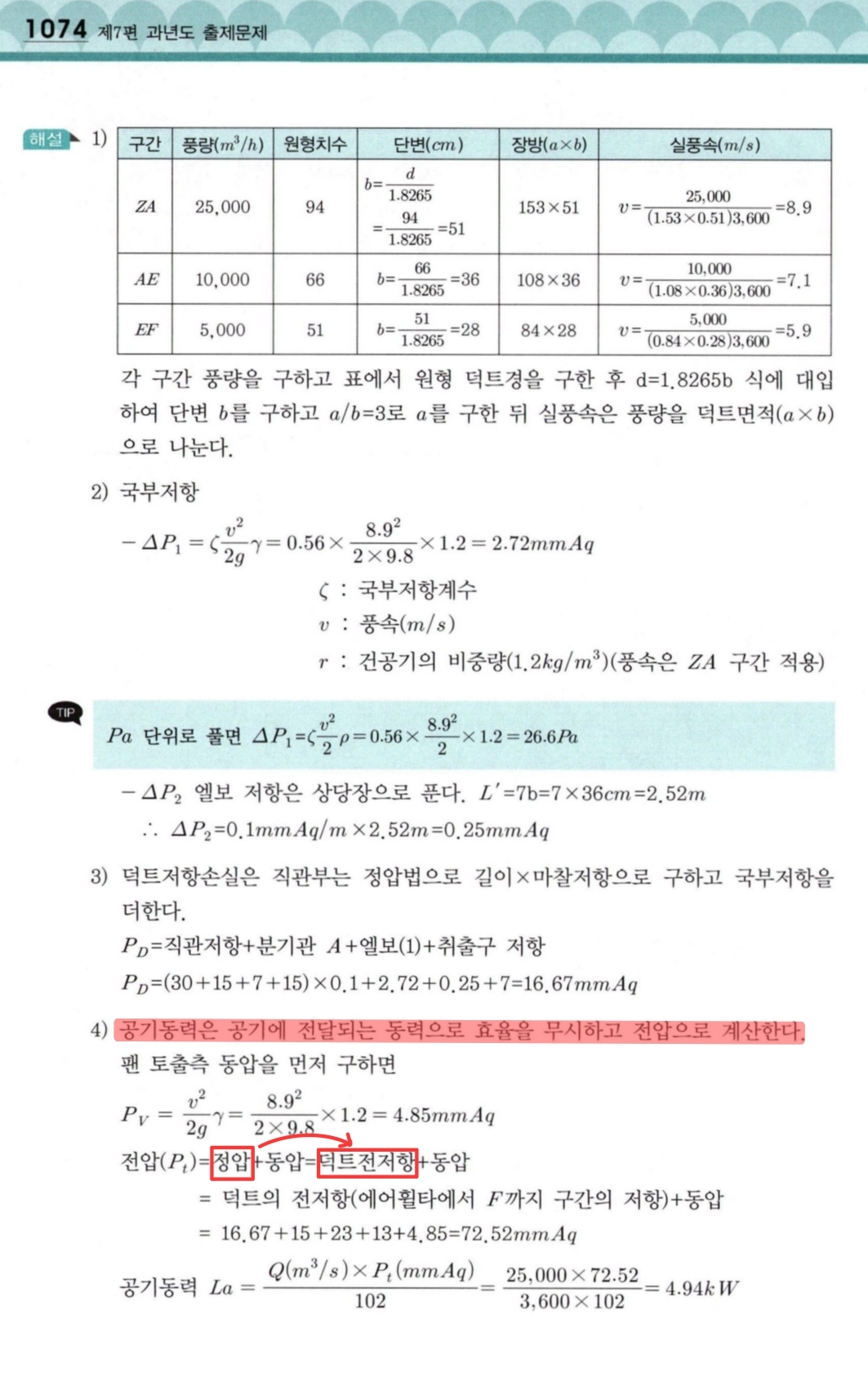 공기동력은 전압으로 계산하며..이때 정압은 덕트 전 저항으로 구합니다..