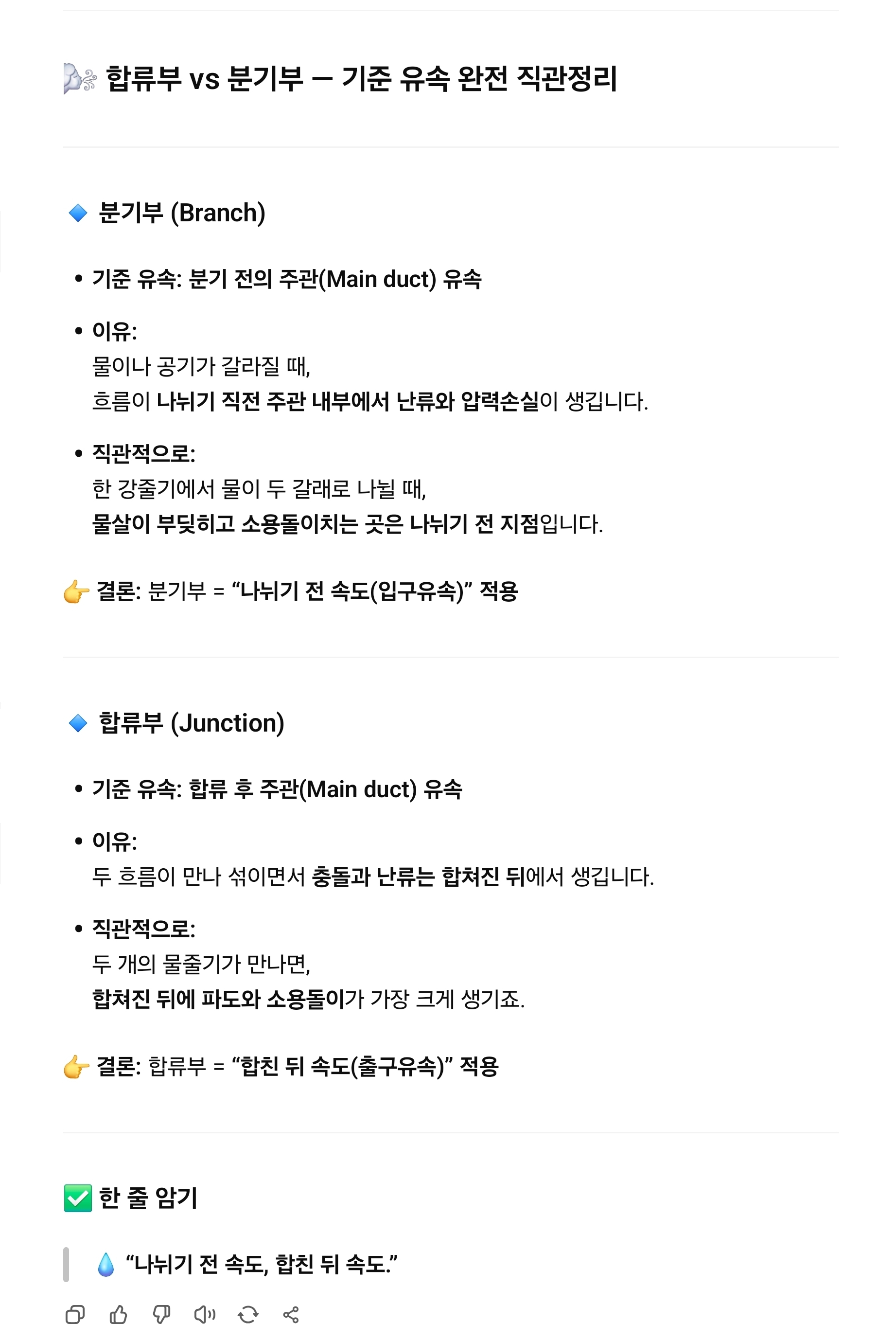 1. 분기관과 합류관의 유속적용 개념을 아래 처럼 정리해도 되나요?