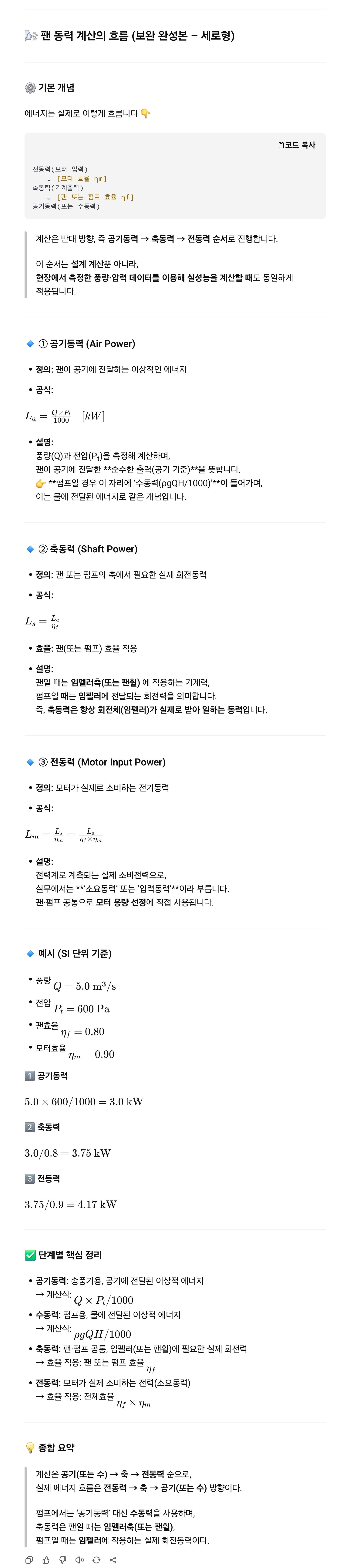 2. 공기동력(수동력), 축동력 , 소요동력(전동력) 의 개념을 아래처럼 정리해도 되나요?
