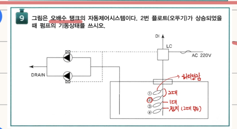 탱크내 수위에 따라 펌프 2개를 가동 및 중지하도록 제어한다. 라고 답을 적었는데 알맞게 적었는지 궁금하네요