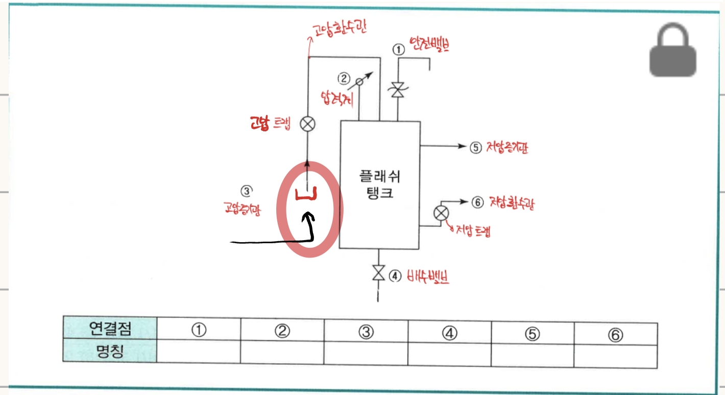다른 그림은 교재와 동일하였는데 3번부분에 화살표(진행방향)을 표시하고 관 끝부분에 형광펜으로 표시한 것과 같이 캡이그려져 있었습니다.