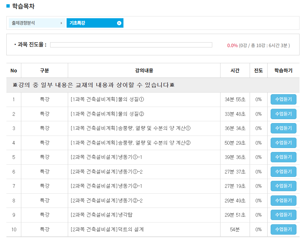 건축설비는 총 3과목인데 강의는 왜 2과목만 있나요??