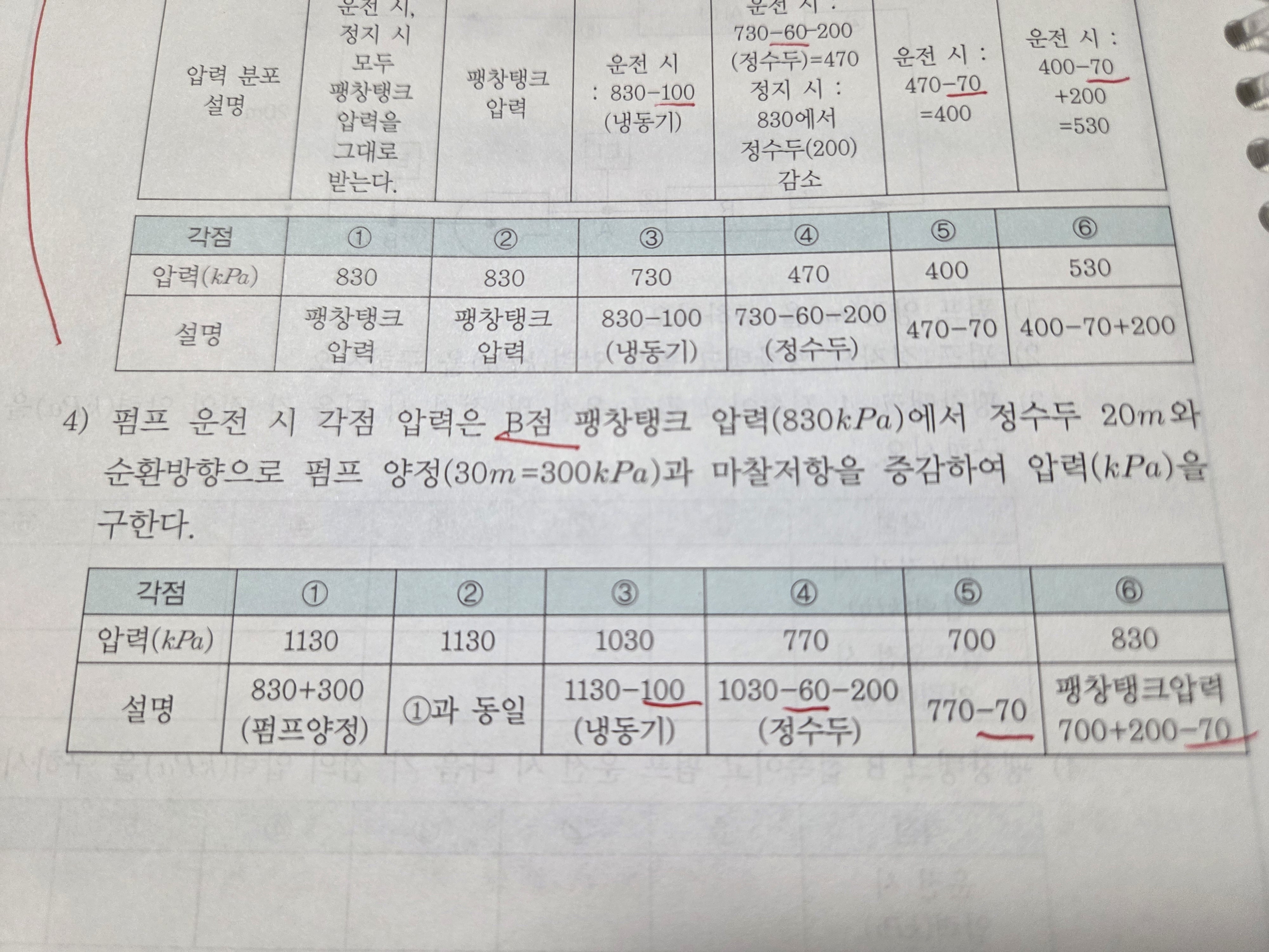 그리고 A점에 팽창탱크를 놓고 펌프 정지시 값 830에도 펌프양정값 300이 이미 포함이 된 값인데, 펌프 작동 시 여기에 펌프양정값 300을 또 한번 더하는건 중복이 아닌지 이해가 잘 안됩니다.