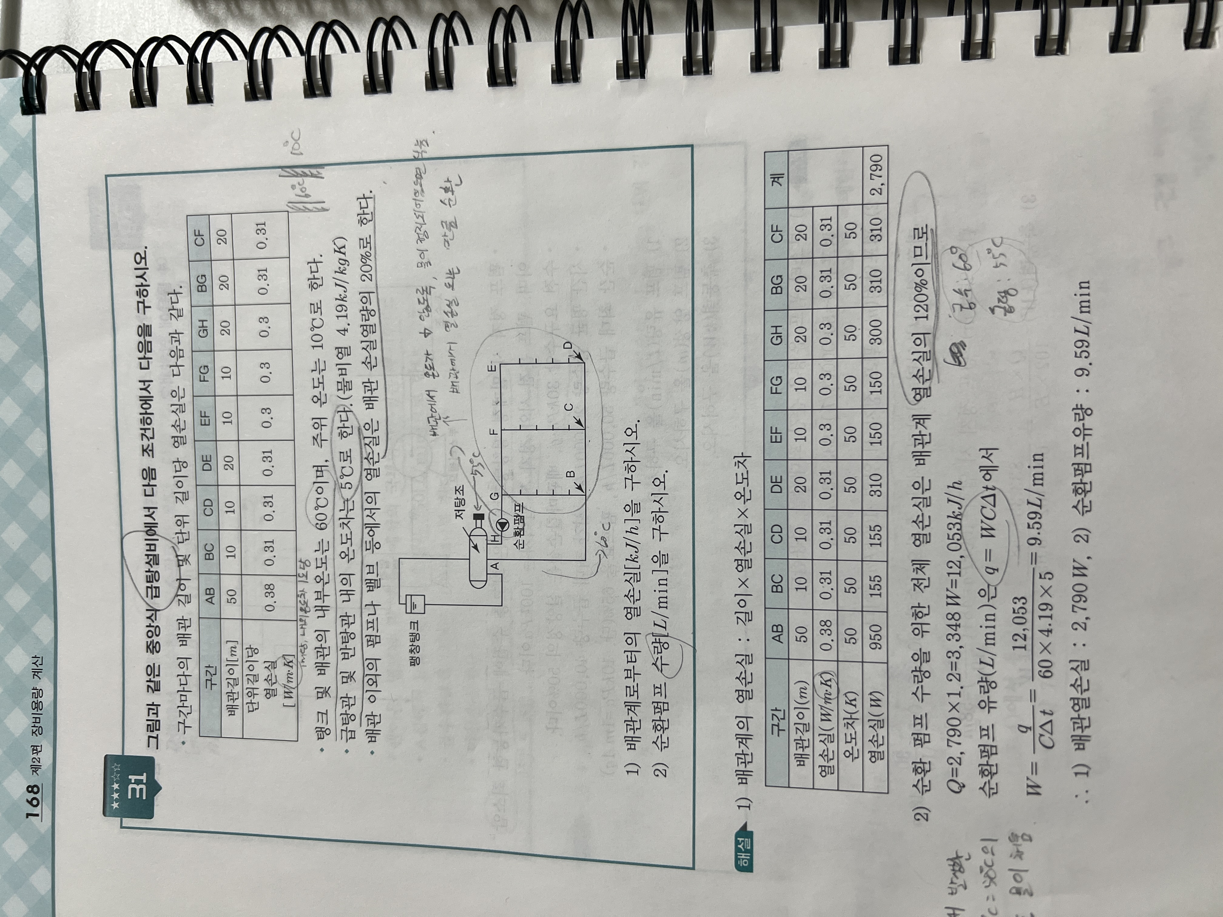 또한 급탕관 및 반탕관의 온도차가 5도라고 하였습니다 이는 나가는 물과 들어오는 물의 온도차인거 같은데, 그럼 순환펌프에서 물이 가열되는 건가요? 순환 펌프의 수량을 구할 때 온도차 5도가 사용되어서 질문드립니다. 제가 설비과가 아니라서 그림을 봐서는 어디서 물이 가얄되는지를 몰라 여쭤봅니다