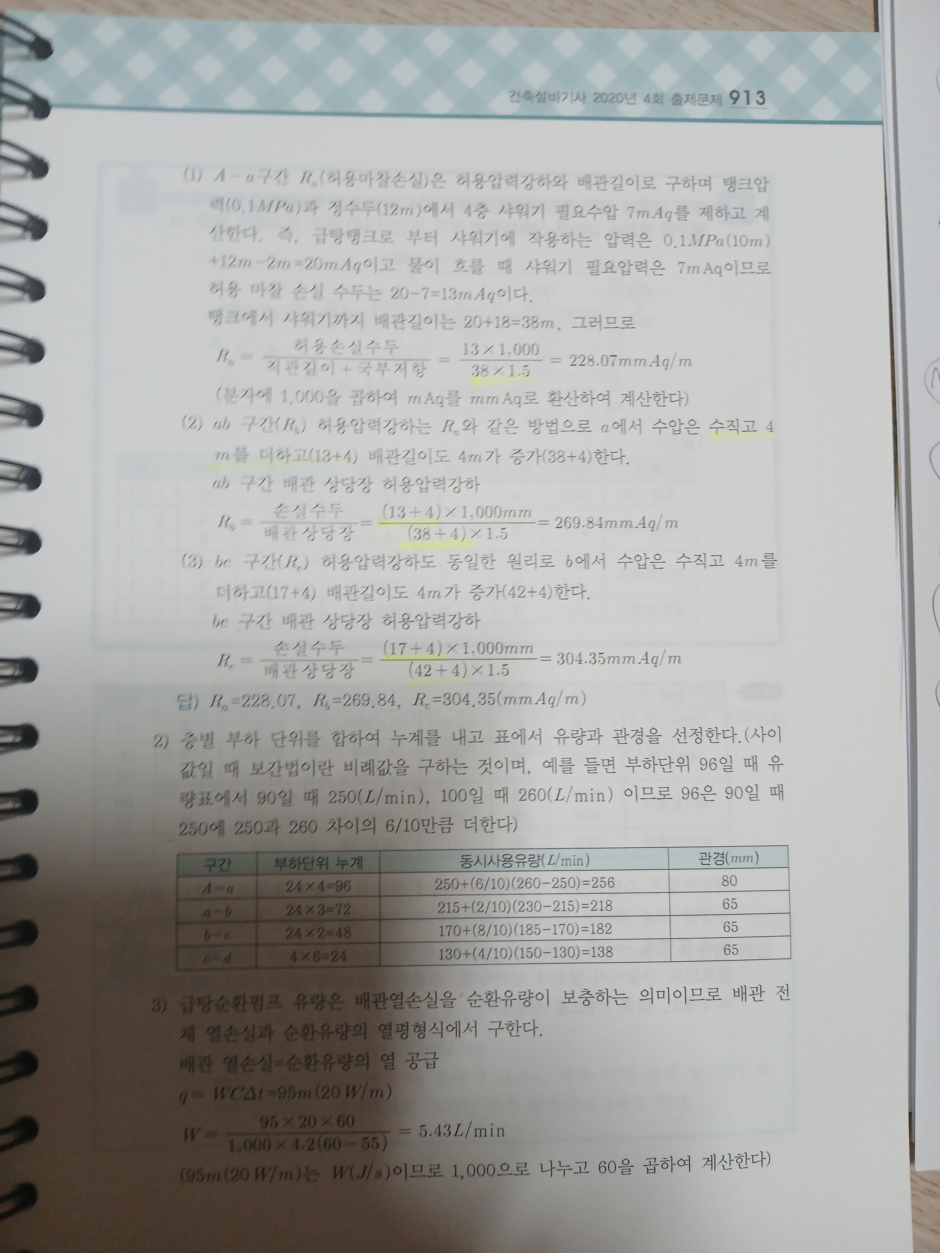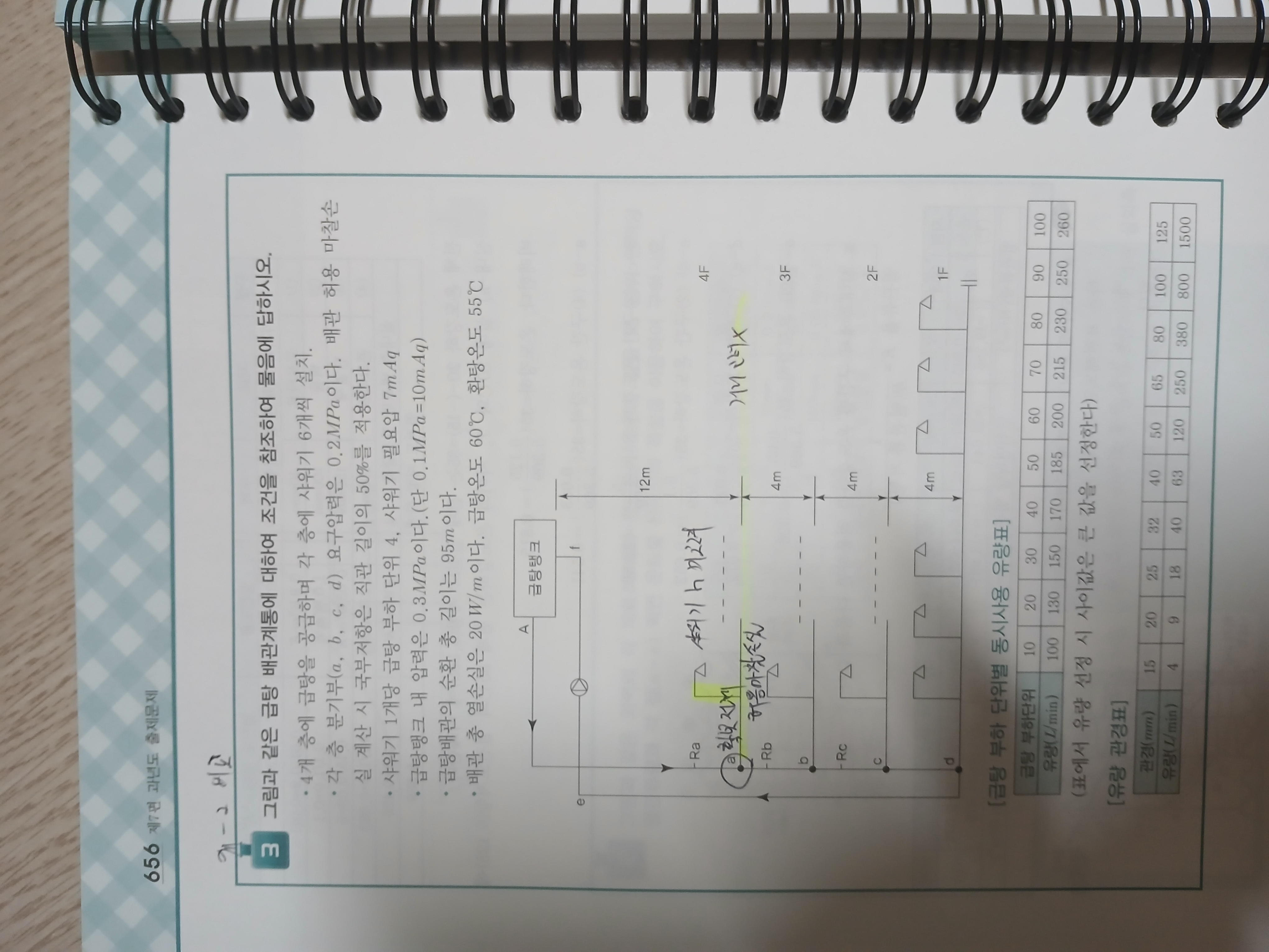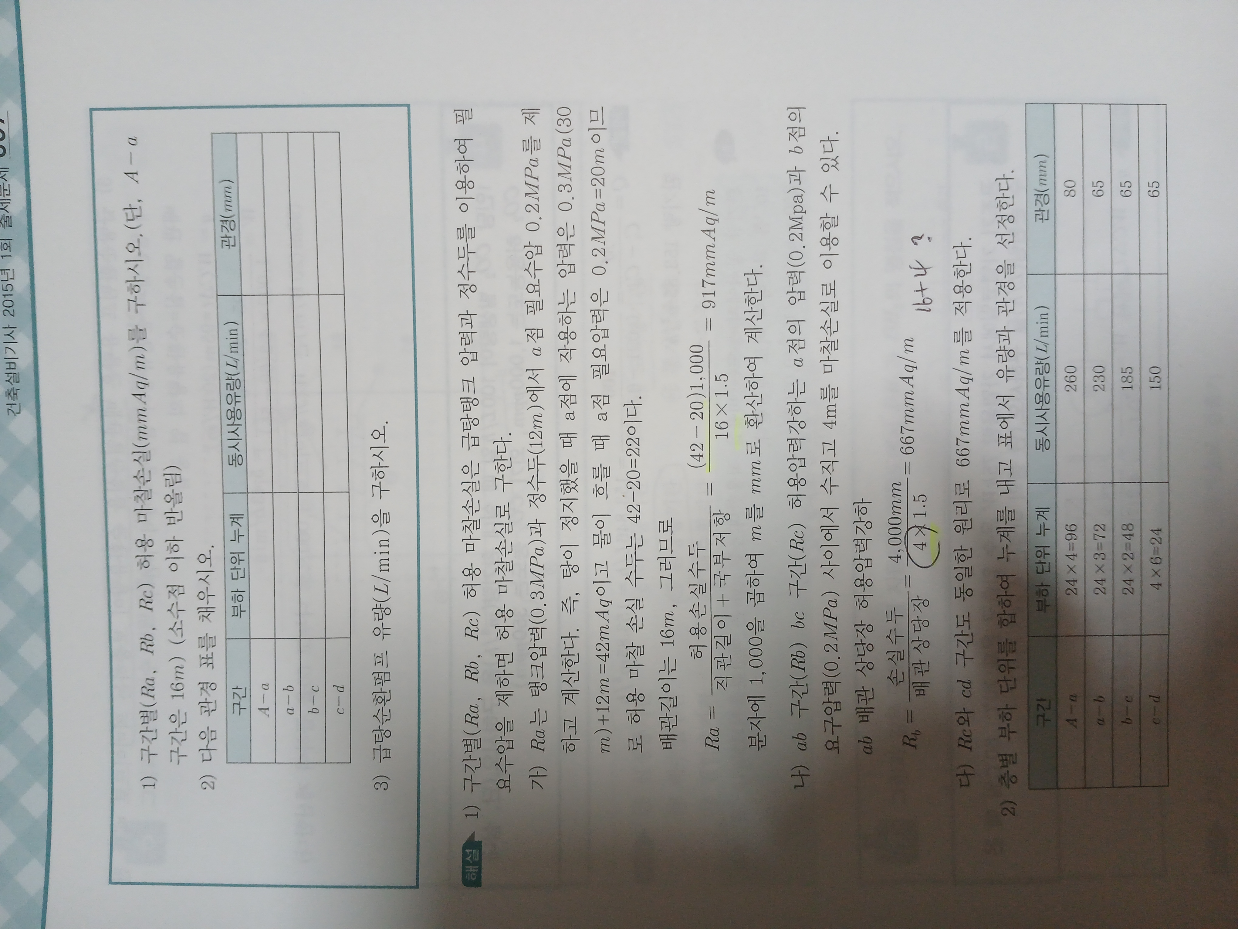 각 분기점 (a, b...)으로 주느냐..샤워기 말단 압력으로 주느냐에 따라 허용압력강하와 배관길이가 달라 집니다..