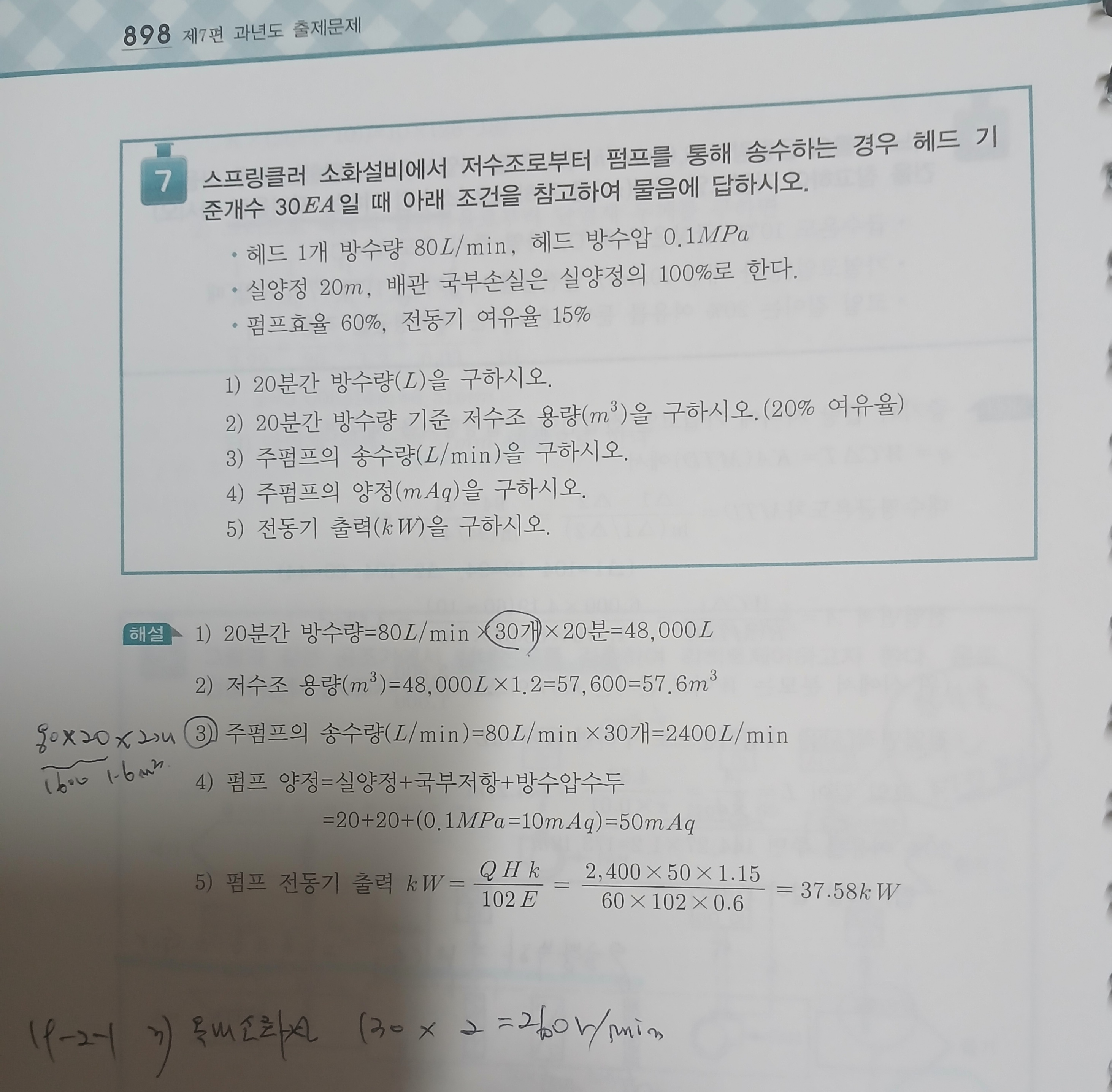 스프랑클러 송수량 계산관련 아래 교재 풀이가 현행인가요?