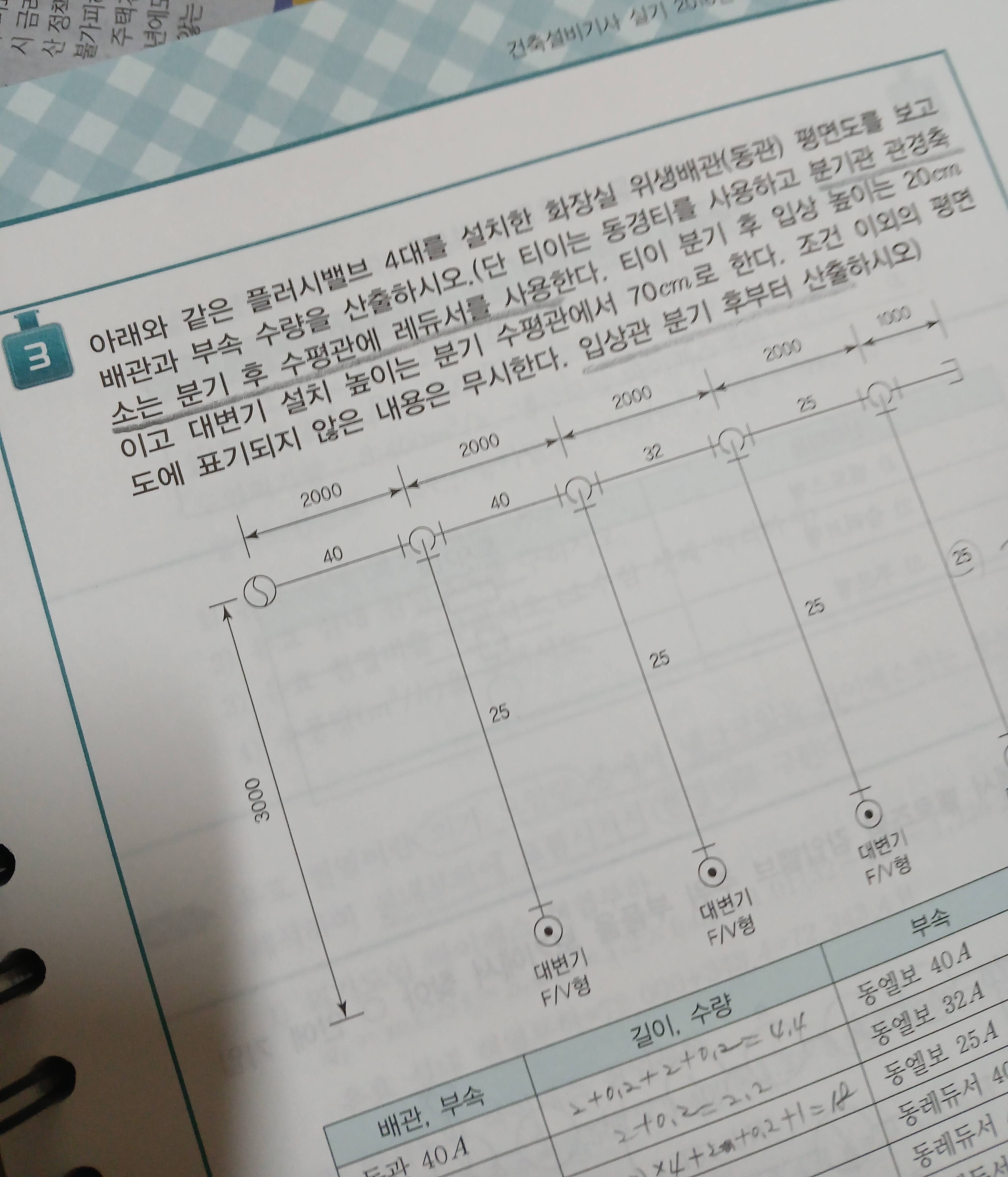 아래 문제에서 입상관 분기후부터 산출하라는 조건이 주어졌는데 분기관 최초 40A도 포함하여 산출을 하였습니다. 태극마크 기호때문인가요..설명 부탁드립니다.