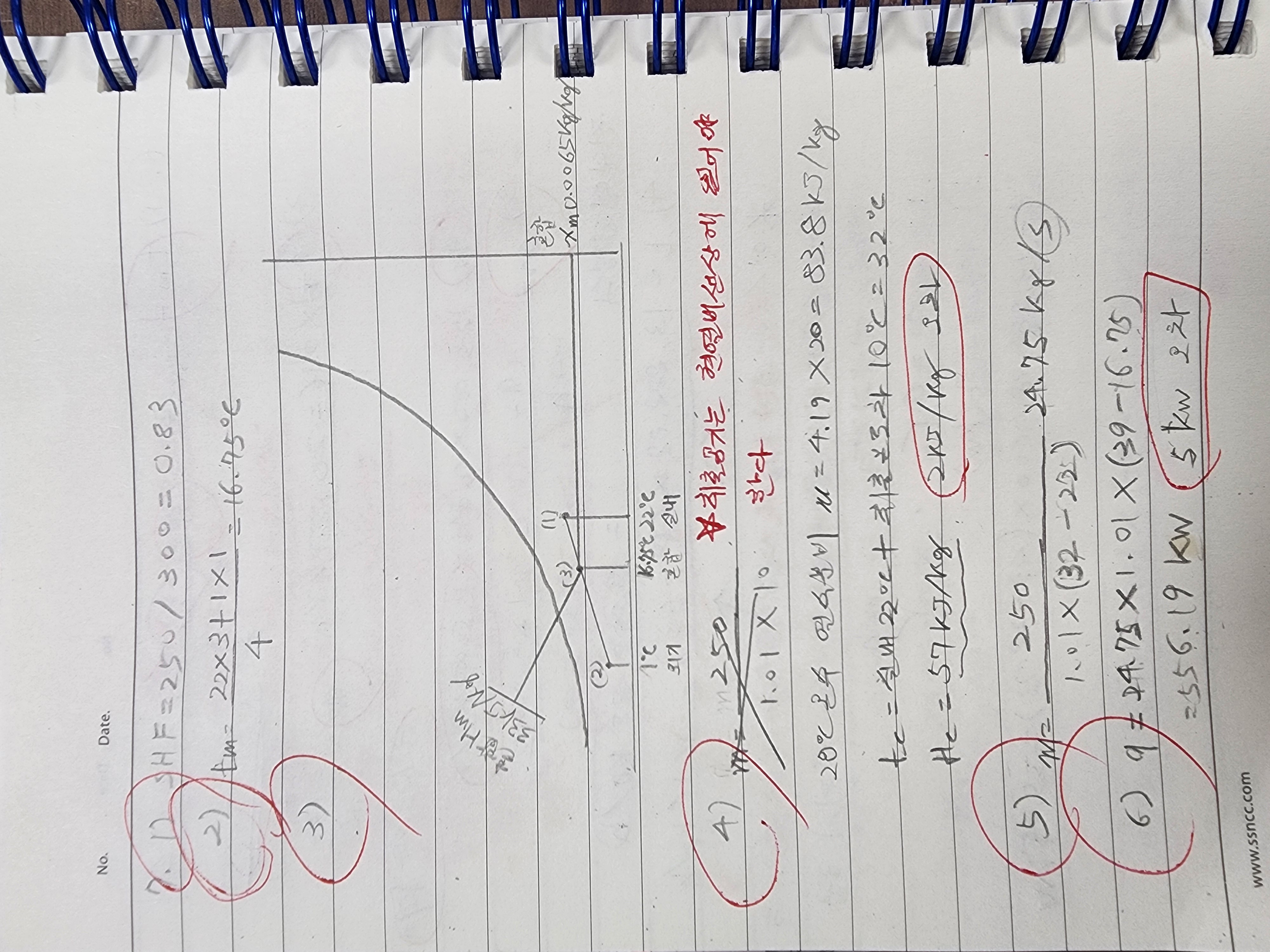 이럴경우는 제가 선도에 그린 현열비선이 완전 수평하지 않고 약간 비뚤어지거나 다른 문제가 있
