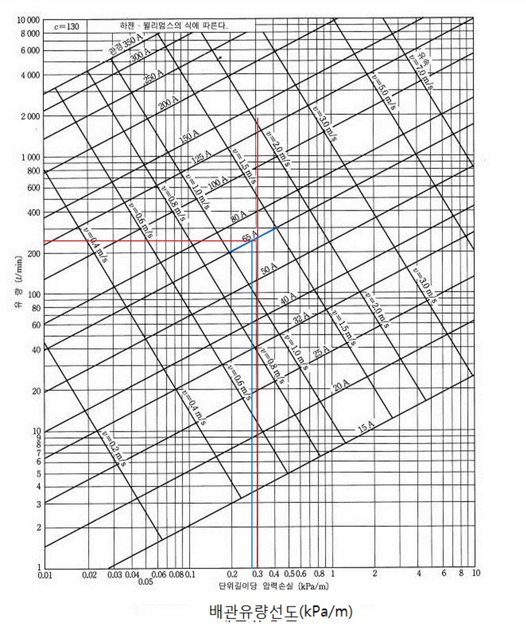 3-4 구간으로 보면 아무리봐도 65A에 0.28kpa마찰저항으로 보여서요.