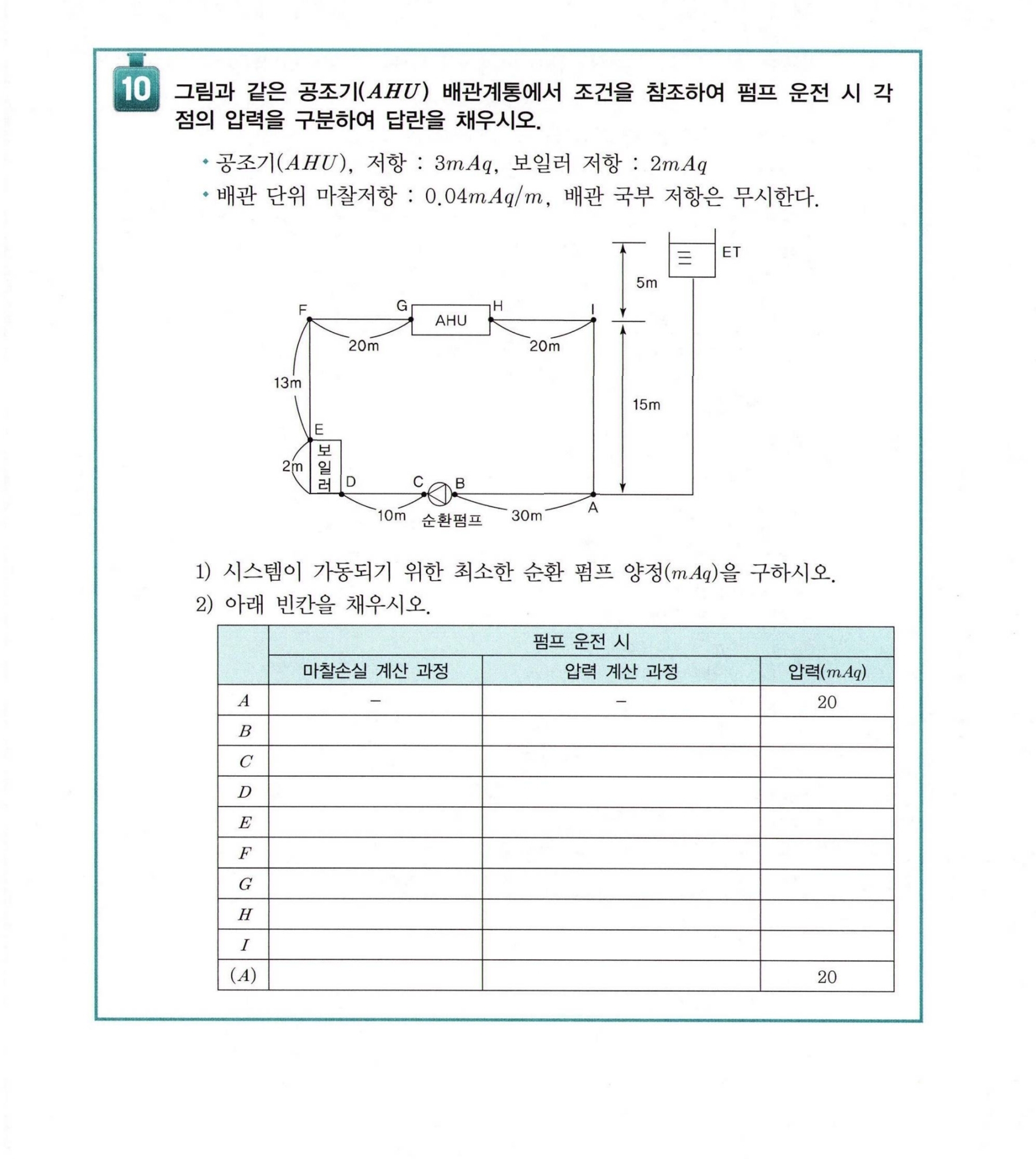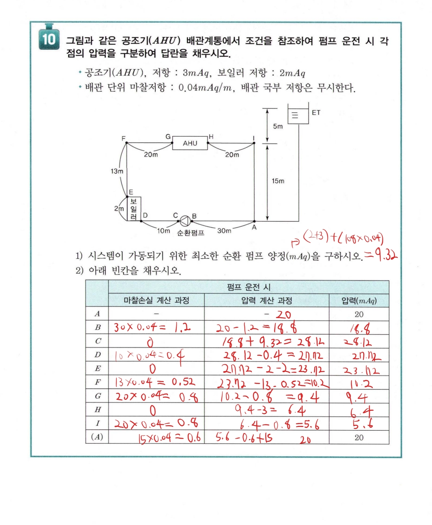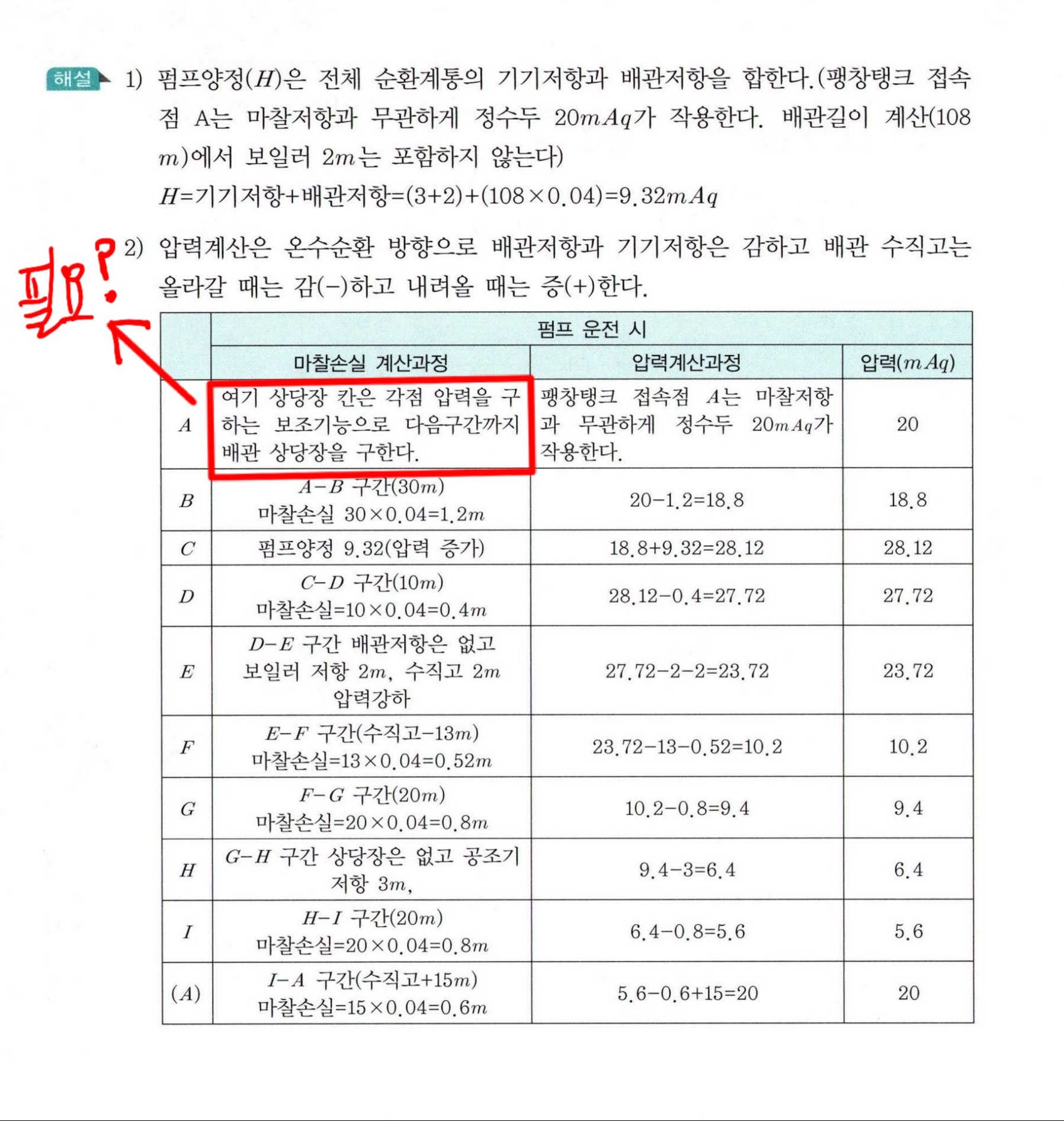 마찰손실에는 배관의 직경의 마찰저항만 적고 기기저항은 0으로 처리