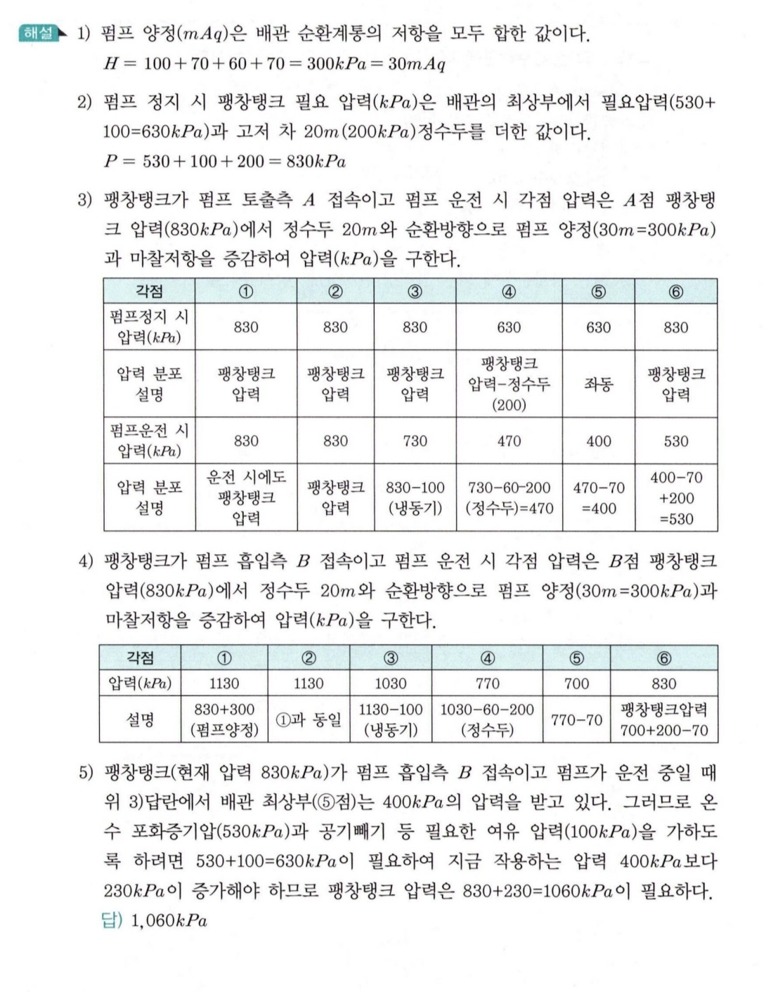 그리고 해설에서도 400kpa로 230kpa를 늘려서 1060kpa가 필요하다고 하시는데