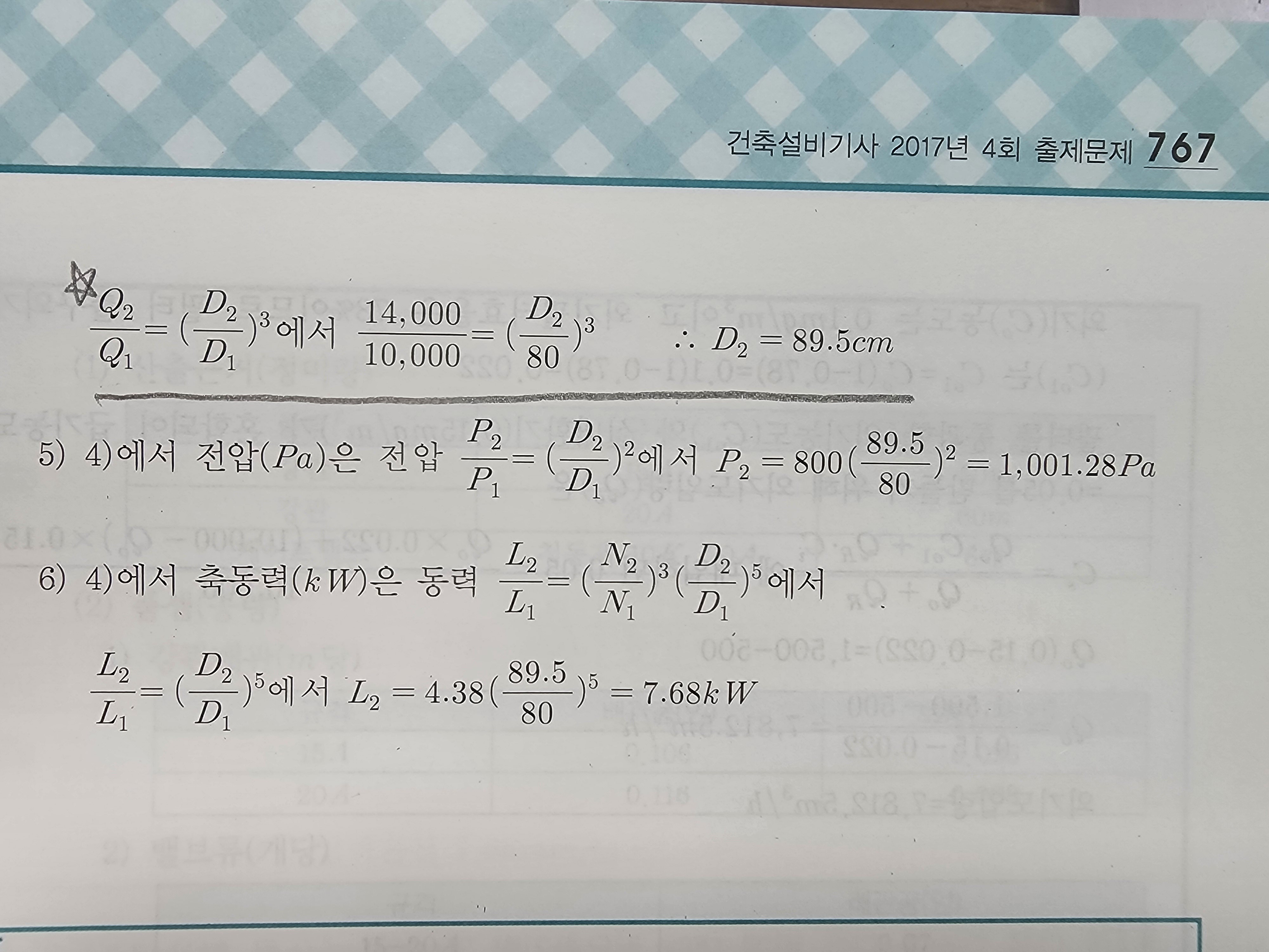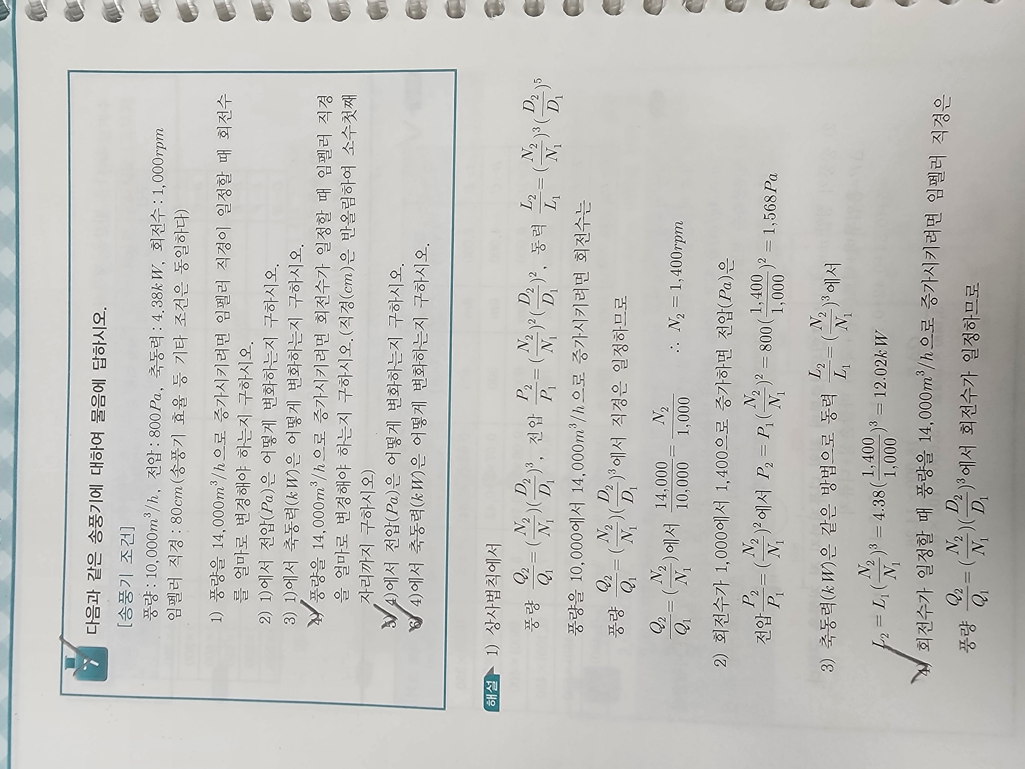 안녕하세요. 교수님 위 문제 4)번에서 상사법칙 이용하여 풍량을 증가시키기 위해 변경되는