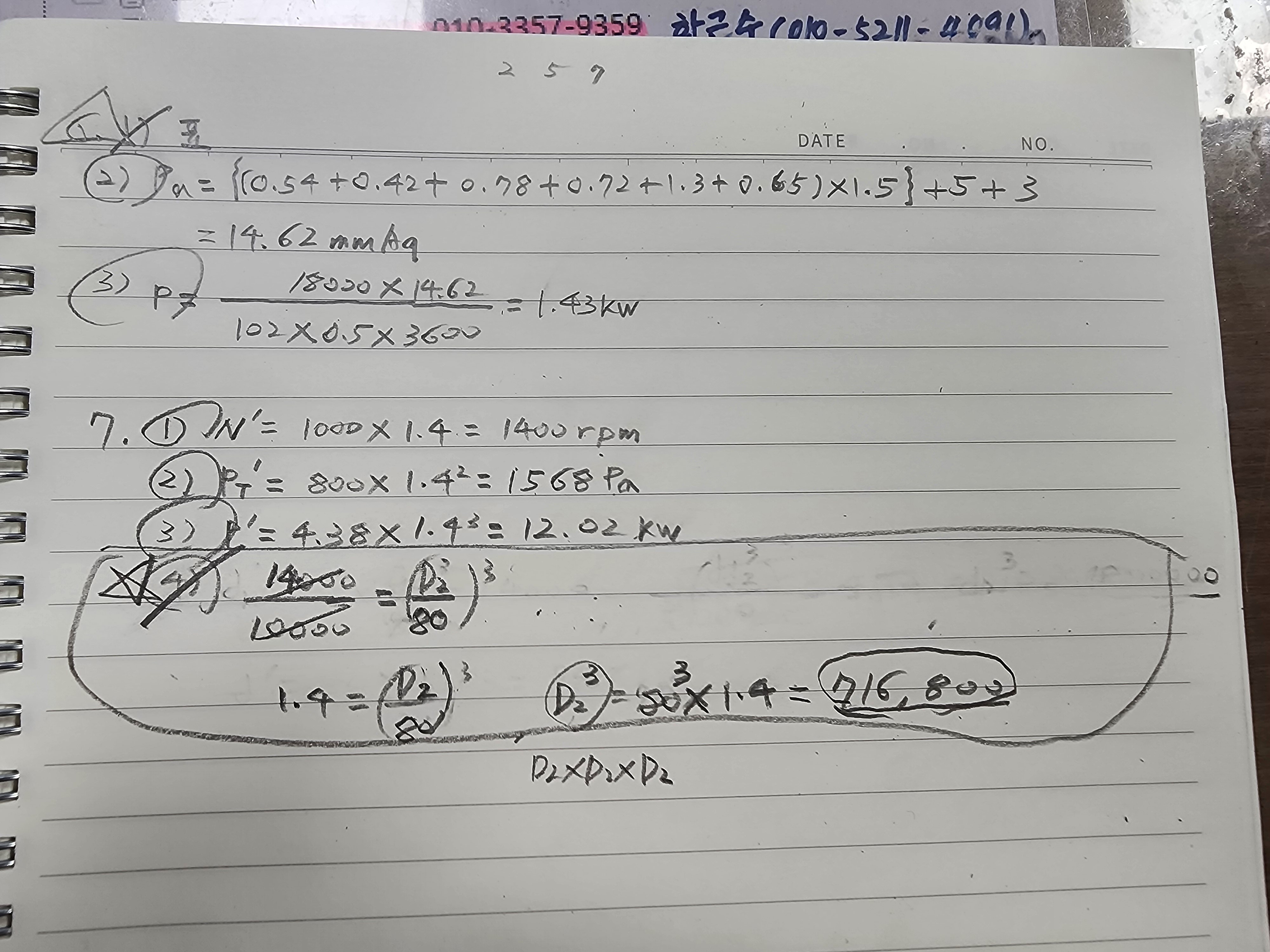 임펠러 직경 구할때요. 유량 변경배율은 직경변경 배율의 3승에 비례한다 라고 식을 세워서