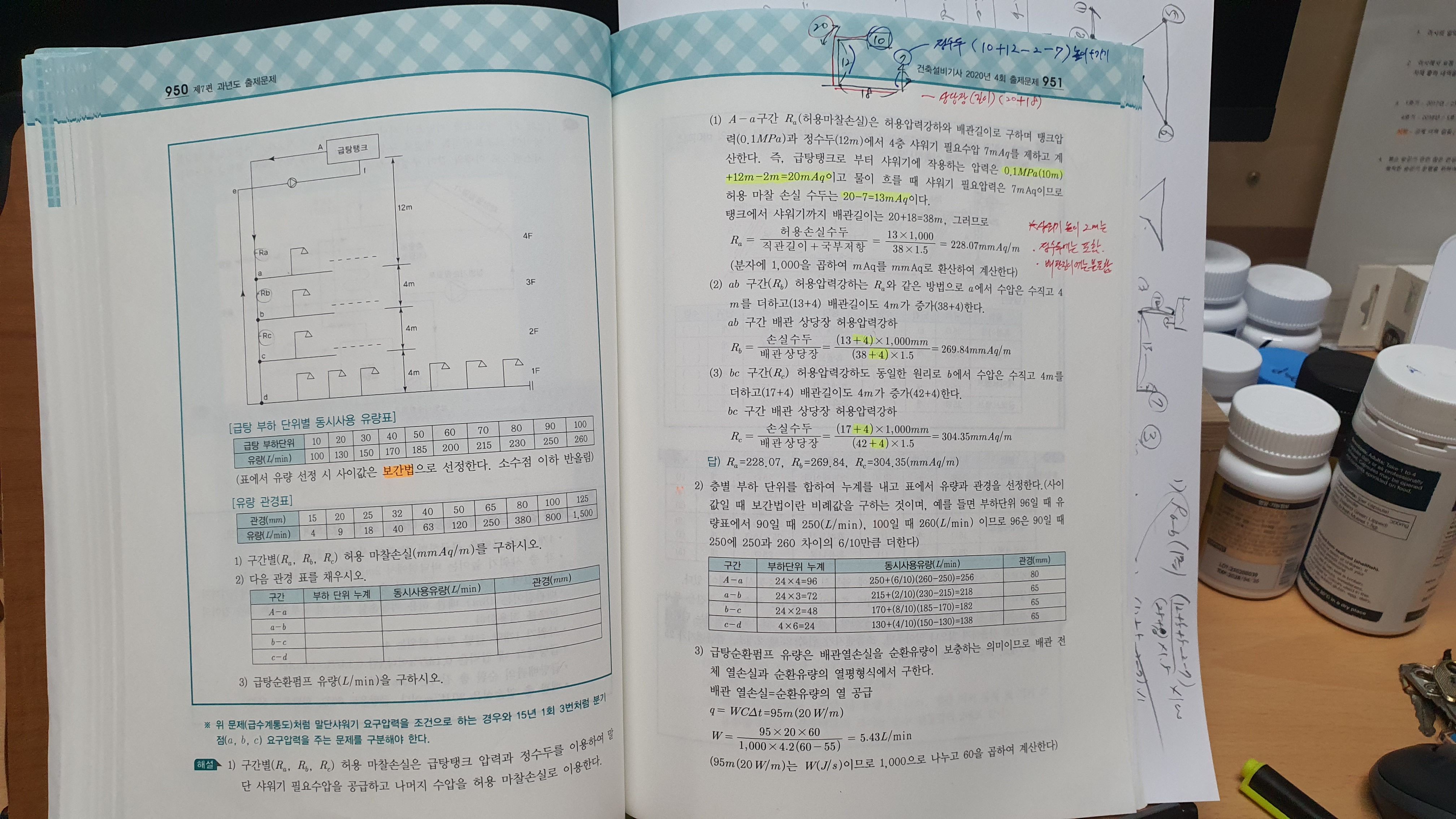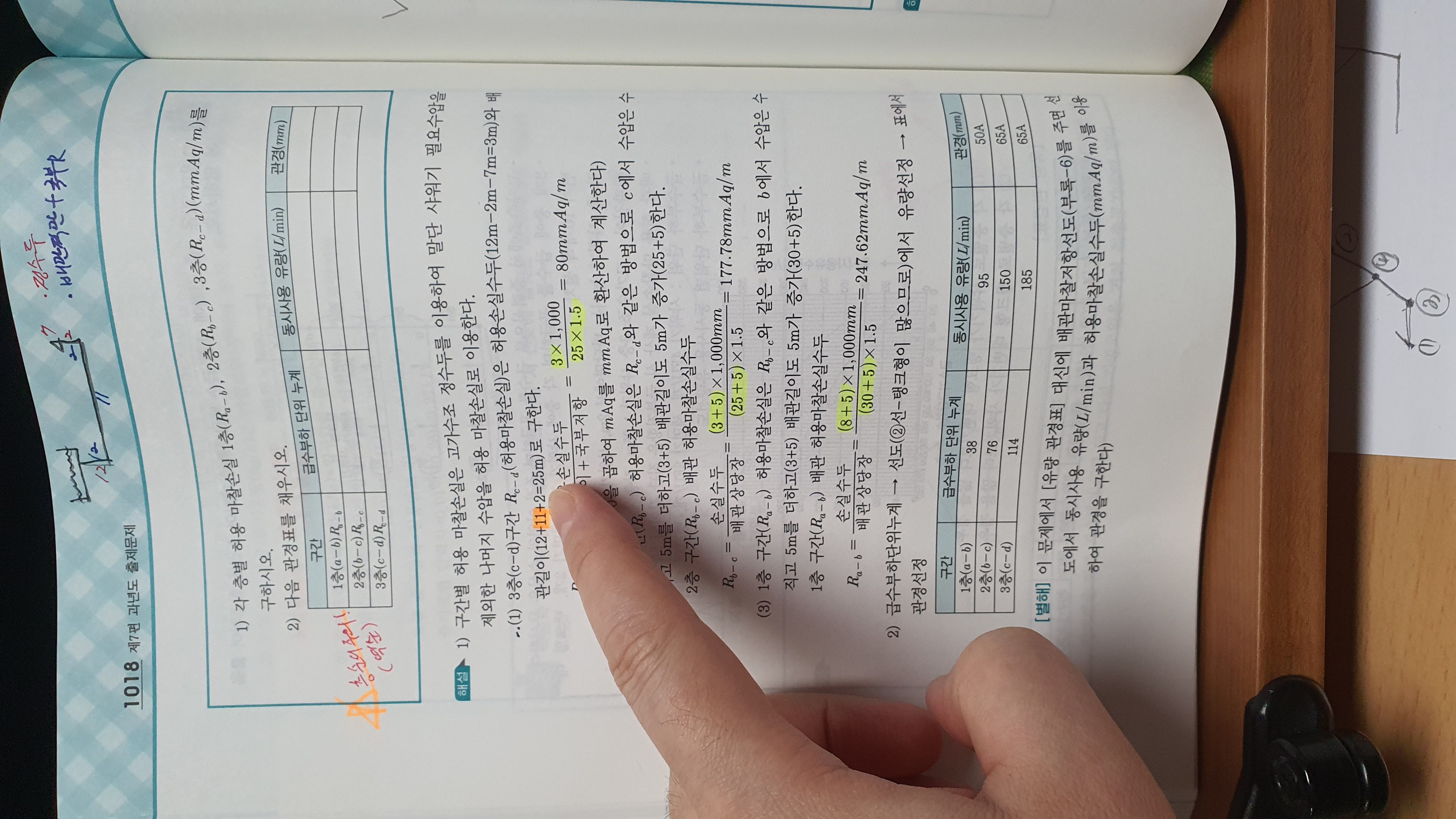 샤워기의 높이 2미터는 분모의상당장에 포함되나요? 아니면 분자의 정수두에 포함이 되나요?