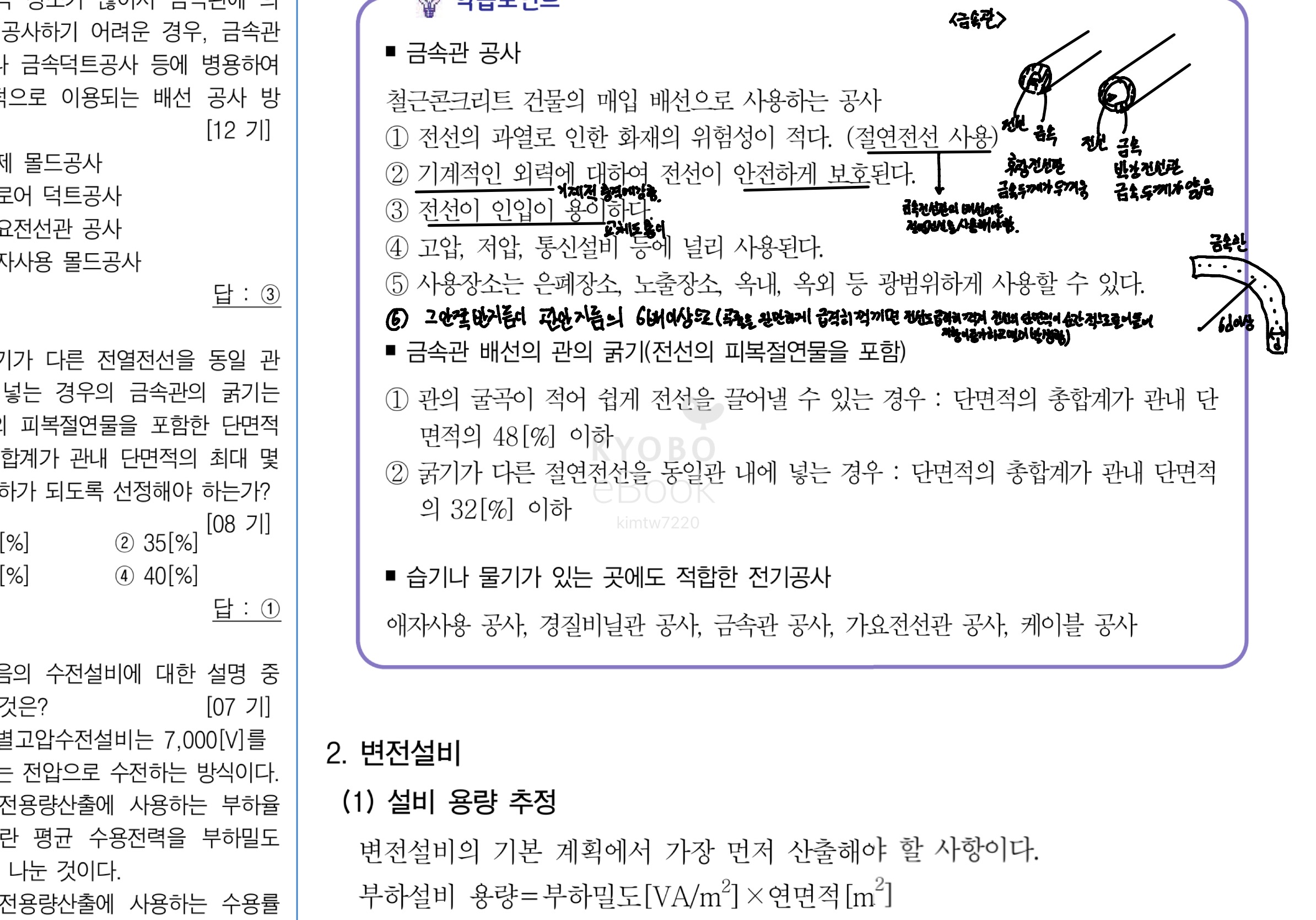 현재 질의하신 금속관 배선의 관의 굵기 선정 기준이 KEC (한국전기설비규정)에 관한