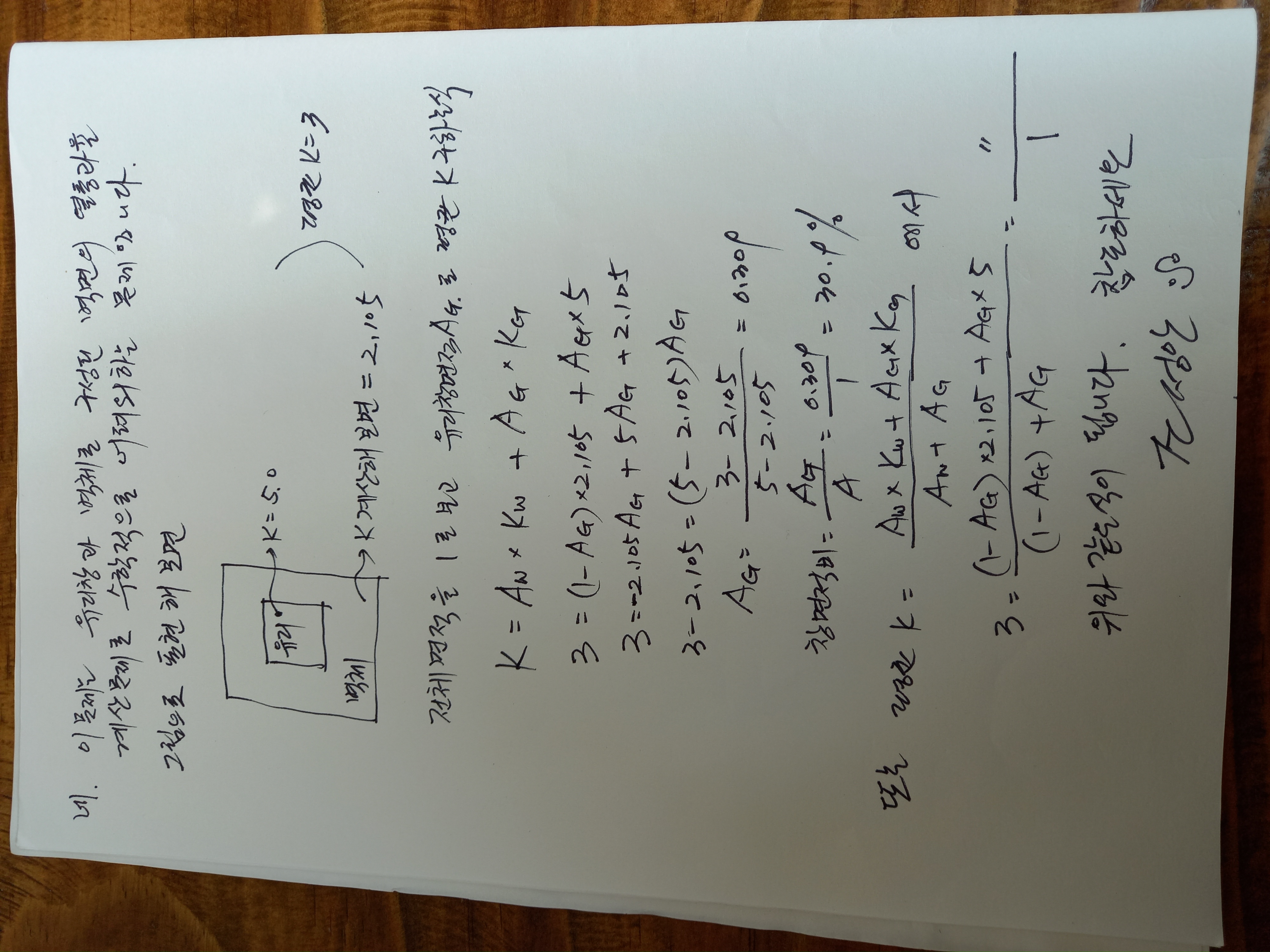 풀면..3=2.105-2.105X+5X (1)