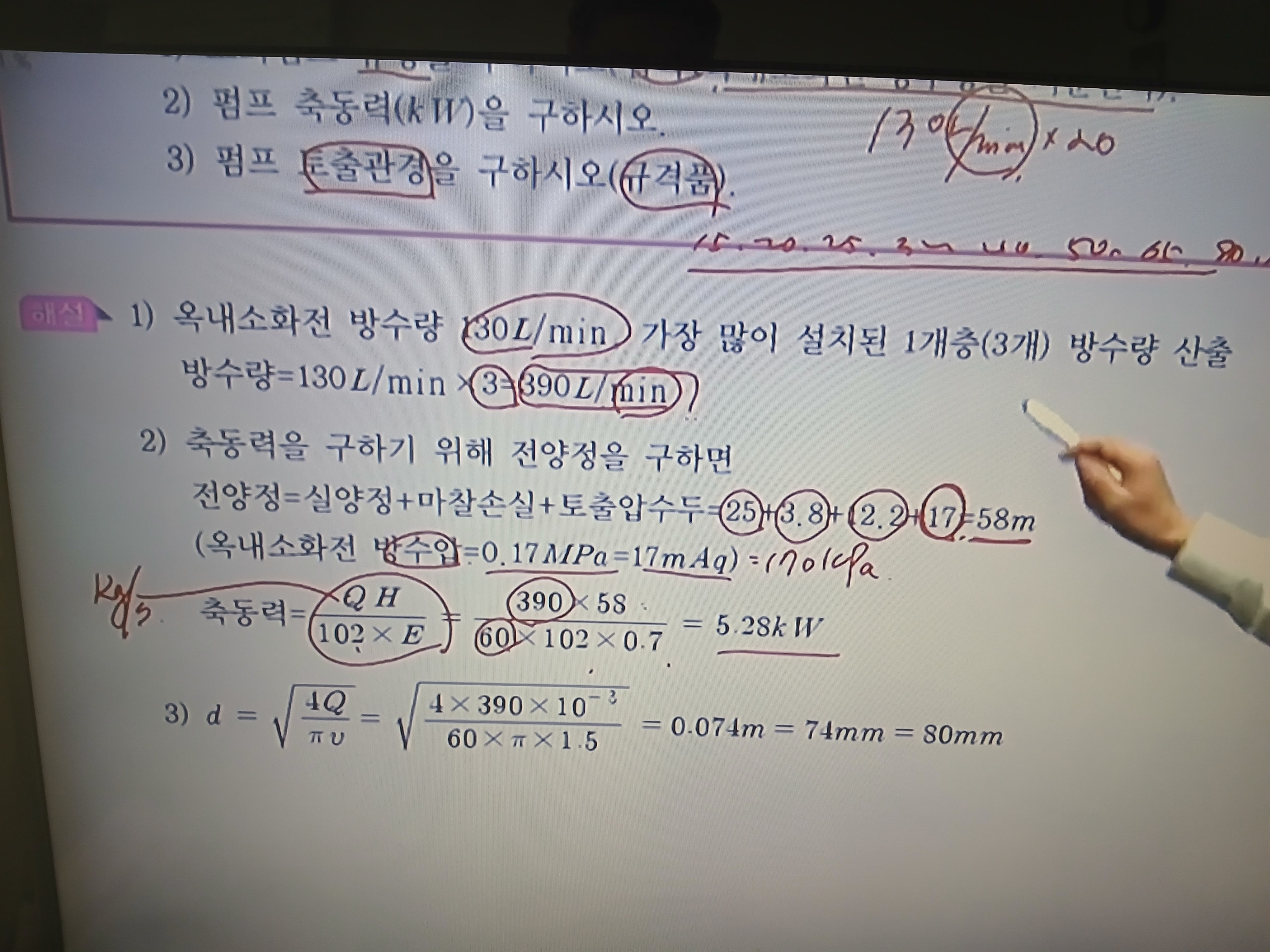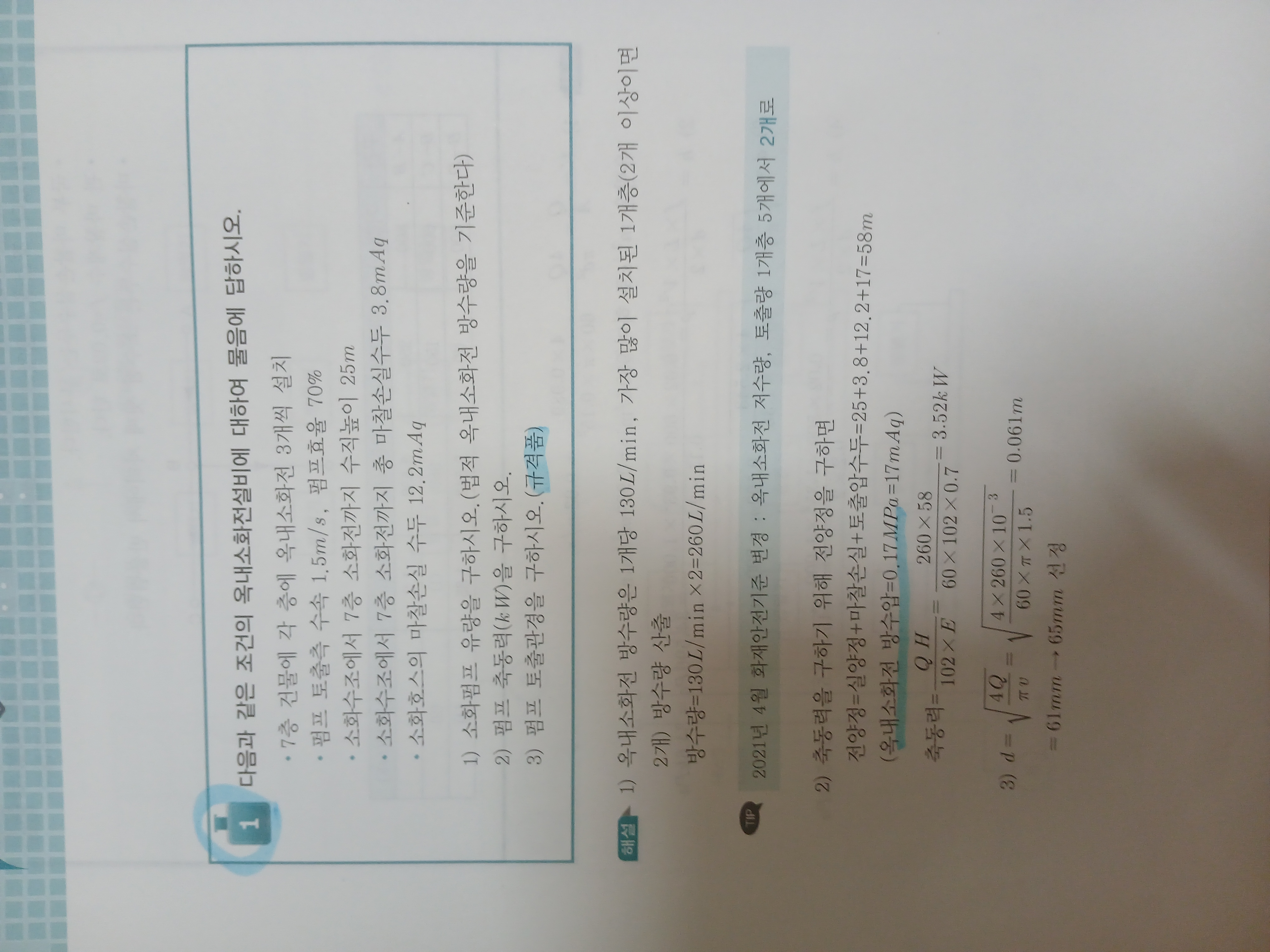 19년 2회 1번 옥내소화전설비 방수량 산출시