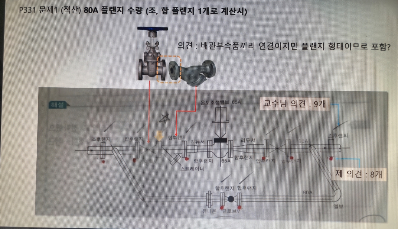 1. 답변에 따르면 배관부속품 끼리 연결된 부분도 플랜지 형태이므로 합 플랜지로 포함시키고,