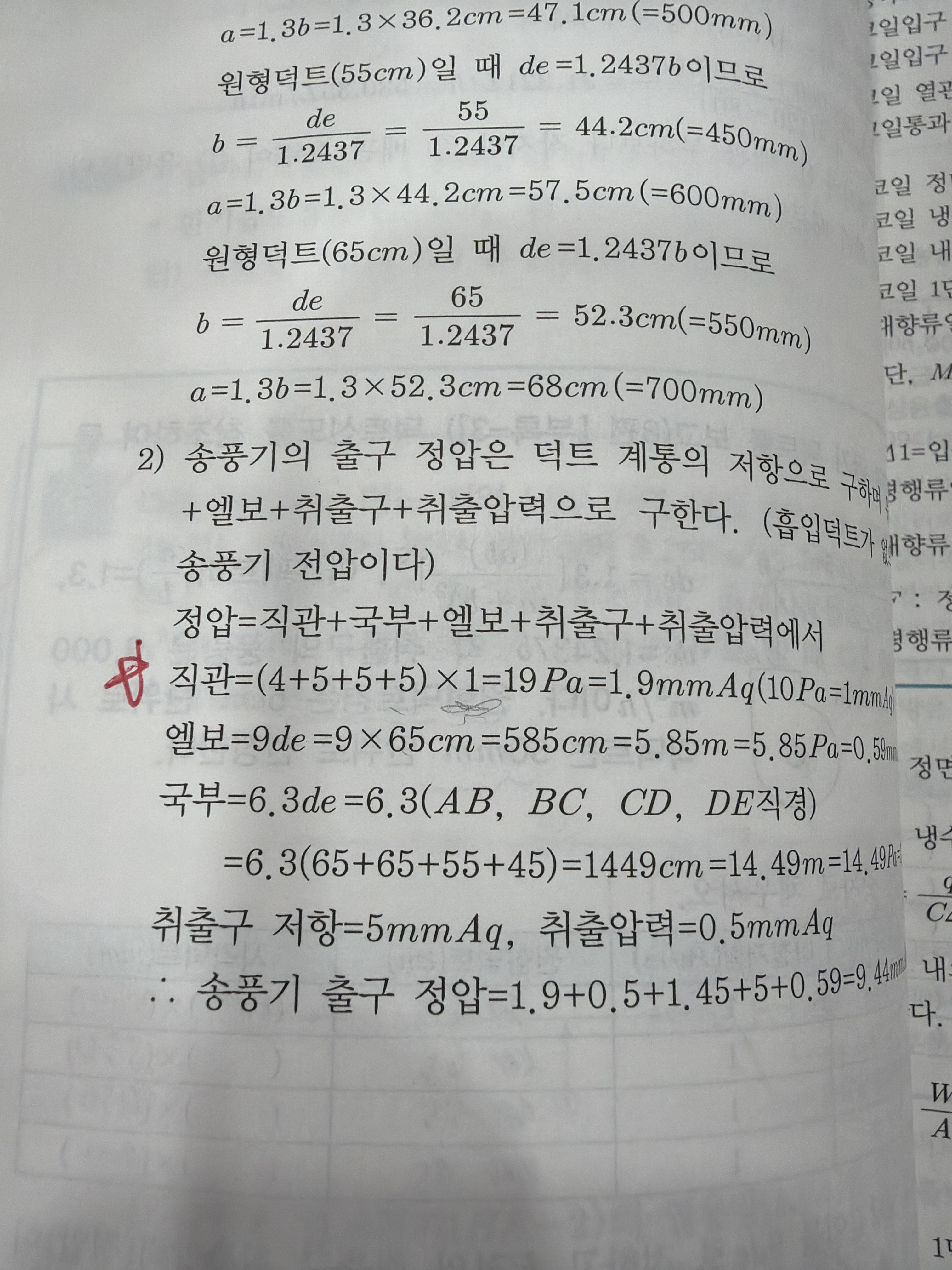 ==> 네..덕트 마찰저항은 설계값 1Pa/m과 실제저항(0.7, 0.8, 0.9..등)이 있겠지요.. 문제에서 조건이 있으면 조건대로 풀어야 하구요..조건이 없으면..앞뒤를 보세요..
