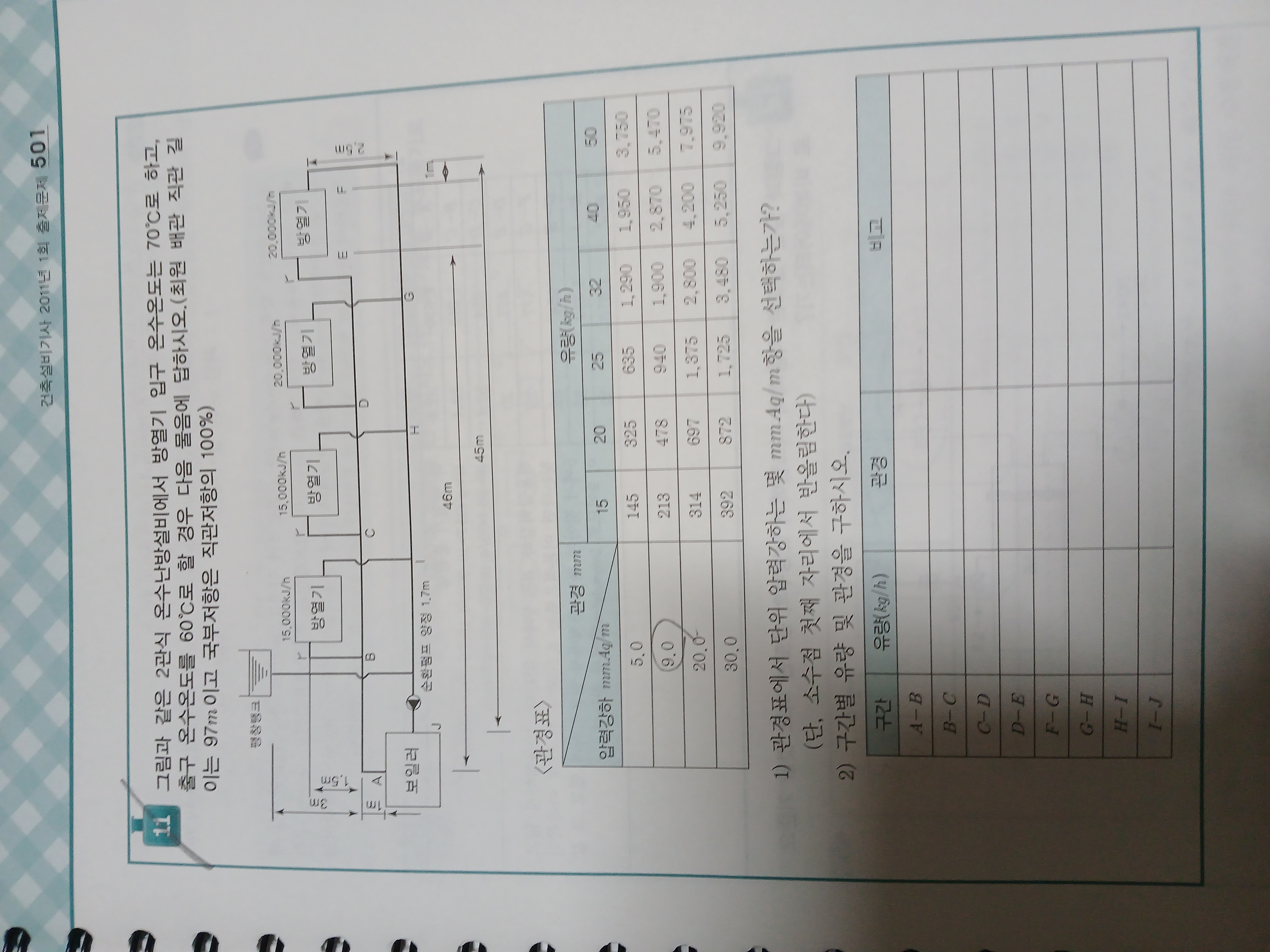 1) 아래 문제에서 20,000kJ/h는 477.33kg/h로 환산되지만 477로 적용..